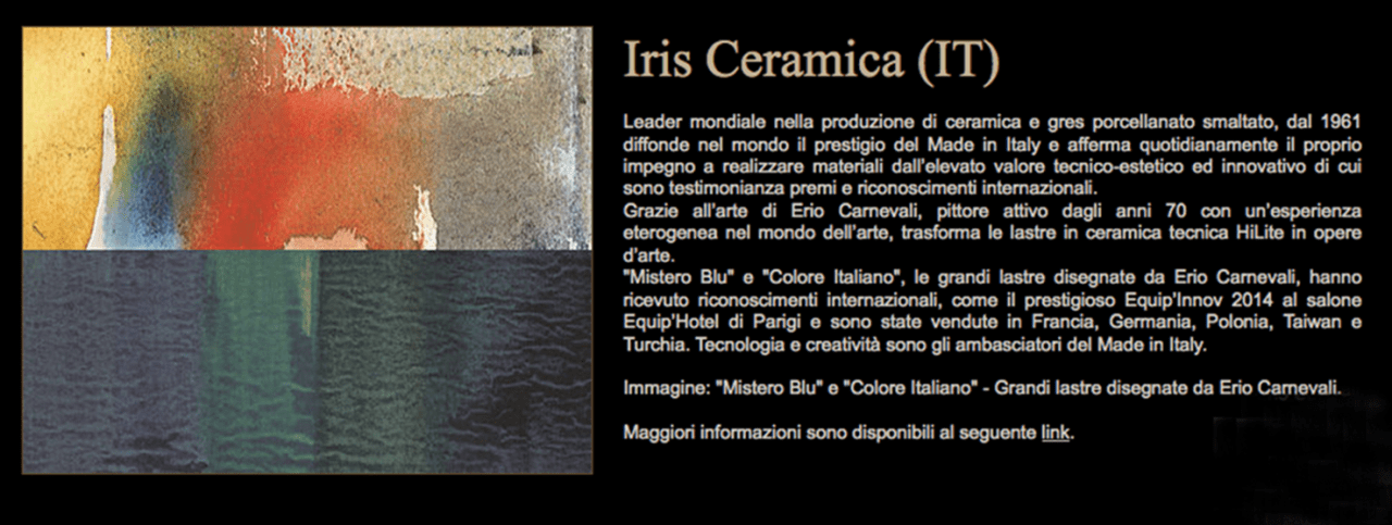 Le lastre di Erio Carnevali in collaborazione con IRIS Ceramiche ai Corporate Art Awards 2016